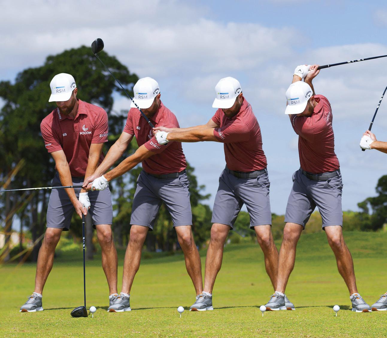 OF ALL THE THINGS THE BEST GOLFERS IN THE WORLD DO WELL, which moves should average players try to add to their games? I know what you’re thinking: There’s no way I can move like that. To some extent, I agree with you. I’ve been coaching on tour for 20 years, and players have never been more fit or had more immediate, accurate feedback on how they’re swinging. Most of them have been doing golf-specific exercises since college, and they track their technique every day, so they’re able to do things we can only dream of. However, not every tour-pro move is off limits—you might be surprised that there’s lots you can steal. You just need to know what to focus on. The good news is, you don’t have to be perfect: The better you do these things, the more they’ll help. It’s not all or nothing. By adding these pro moves, you will mimic the best players where it matters the most and lower your scores. with Drew Powell