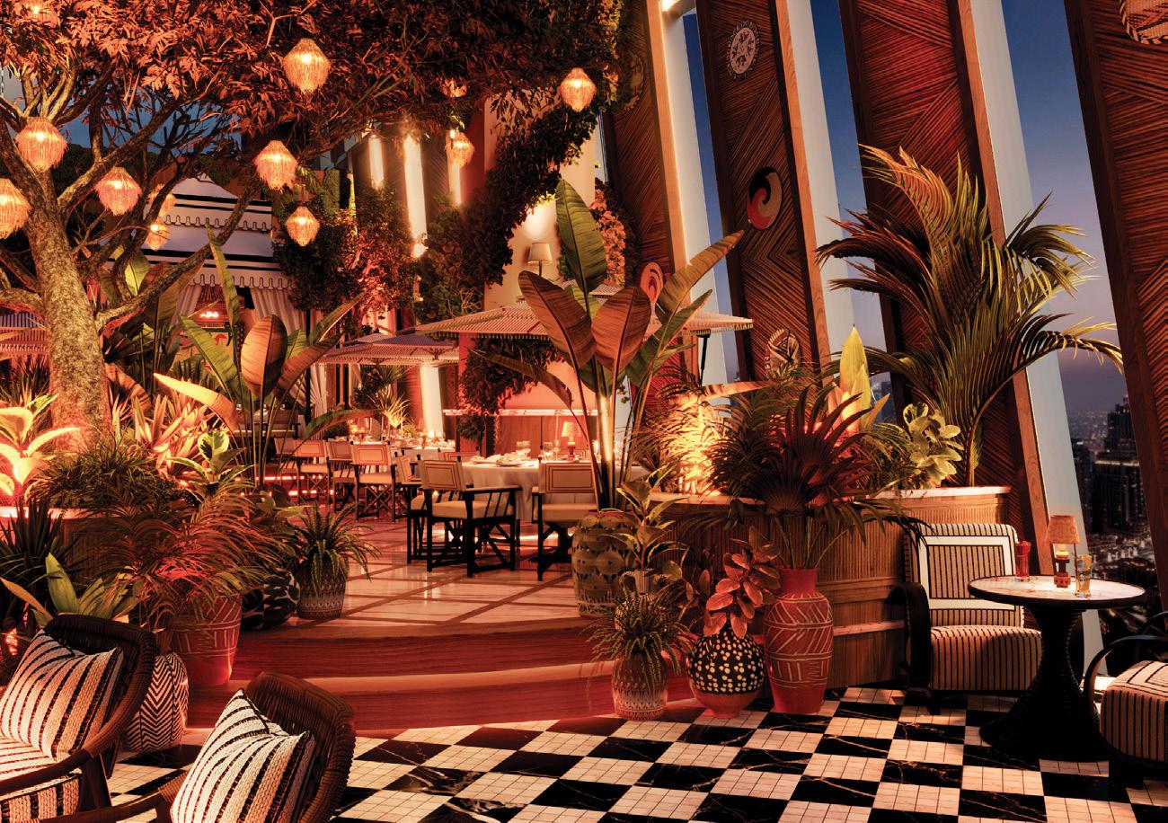 If Billionaire is Briatore at full energy, Lion in the Sun, one floor above, on the 62nd, is what he looks like when he steps back. The restaurant is his most personal concept: drawn from the Lion in the Sun retreat he developed in Malindi, Kenya, inspired by Karen Blixen’s Out of Africa and shaped by the sensibility of a property that, over the years, drew global figures from culture, art, fashion and music. Naomi Campbell has been among the Kenyan retreat’s regulars. The Dubai translation, designed by architect
