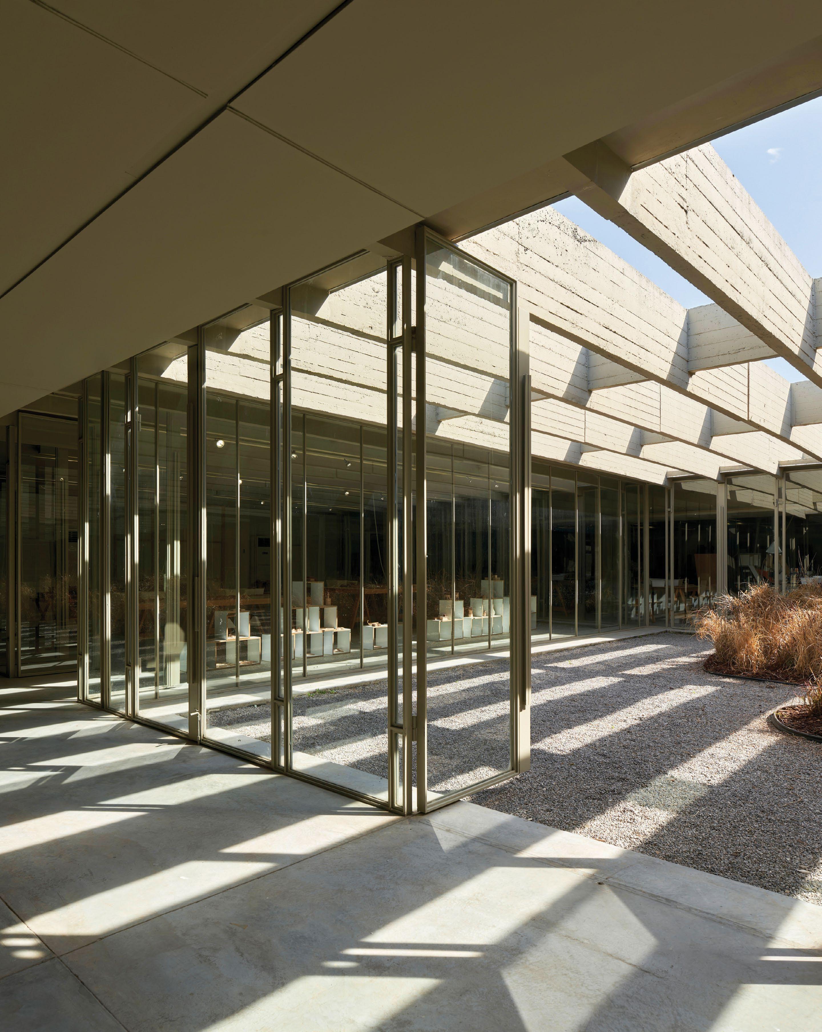 These include inserting flexible partitioning using lightweight steel and glass panels, creating a transparency between the internal and external spaces, and introducing ample, playful light and shadow. “With the help of local craftsman, we were able to translate the ceiling’s structural grid into a series of slender, full-height operable panels in a cost-efficient way,” they say.