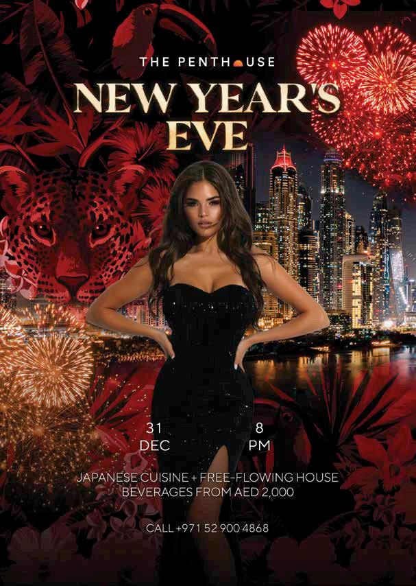 Step into a sparkling New Year with a scrumptious four-hands menu curated by Chef Howard Ko and Roger van Damme and look at the fireworks show from the comfort of your seats while enjoying the energetic live entertainment and tunes of our DJ. NEW YEAR’S BRUNCH SATURDAY 31 DECEMBER | 12:30 PM – 4 PM Premium Bubbles AED 690 NEW YEAR EVE CELEBRATION SATURDAY 31 DECEMBER | 8 PM – 4 AM Minimum spend of AED 5,000 per person For Bookings: 04 582 6111 | reservation-dxb@celavi.com CÉ LA VI Dubai, Tower 2, Level 54, Address Sky View Hotel, Sheikh Mohammed bin Rashid Blvd. @celavidubai | celavi.com Ring in 2023!