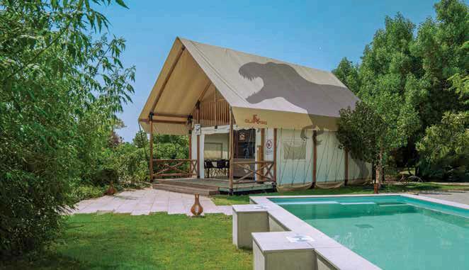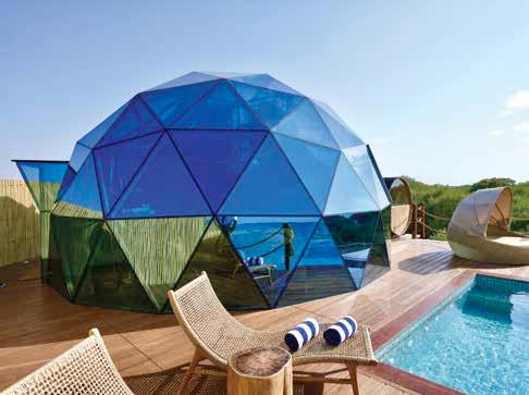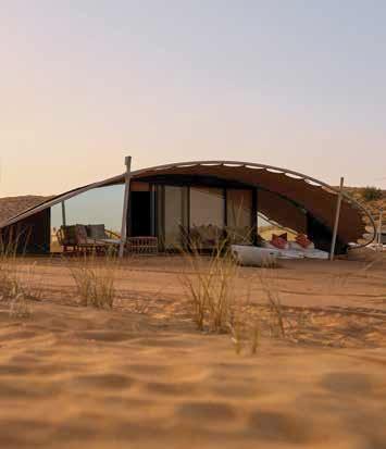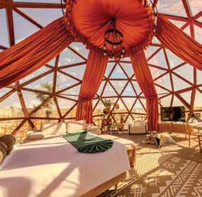 Away from Dubai’s glitzy skyline, Al Marmoom is a unique, experiential resort in Dubai of glamping domes that unroll within the emirate’s golden desert landscape. Tucked inside the UAE’s largest unfenced nature reserve, guests stay in glass domes that offer 360-degree views of the surrounding landscape and have been fitted out with wooden decks where you can recline on a lounger or take a dip in your private pool. While there’s plenty of five-star amenities inside each abode, you’re much better off using your glamping getaway as a base to discover the wealth of desert and Emiratiinspired experiences on offer. Enjoy camel and horseback rides, take part in cultural workshops or get a traditional henna tattoo, and take time to explore the rich biodiversity, spotting Arabian Oryx, gazelles, and over 150 species of migratory and native birds. After dark, delight in an authentic Arabian dinner at the Oasis, then watch as the skies become your own planetarium with stargazing in the tranquility of the desert.