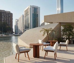 It’s as close to experiencing the Cyclades as you’ll get without hopping on the sixhour flight to Santorini or Mykonos. The buildings, in beautiful white stone, are all curved lines and split levels, designed to replicate the hotel’s moniker destination with pretty magenta bougainvillea plants and olive trees dotted throughout the grounds. Endless shades of white are laced with light woods and soft shades of turqouise inspired by the coastline, which can be enjoyed from almost every room thanks to the big French windows that flood all the spaces with bright natural light.