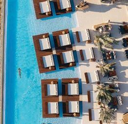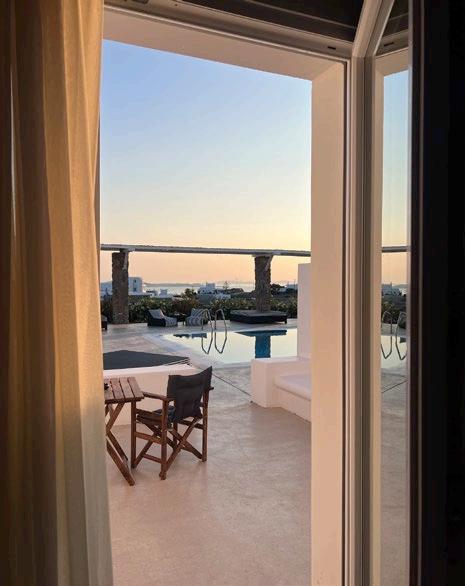 Built in the 1960s, this landmark hotel was the island’s first fivestar hotel and makes for a sophisticated stay in a central location. Overlooking the iconic windmills, the newly refurbed Theoxenia is a stone’s-throw away from the maze streets of Little Venice and the old port, perfect for those looking to balance their energetic days with a place where serenity reigns. The contemporary, light-filled space is given a garden-like ambiance surrounded by olive trees, palms, and bougainvillea. The rooms do the basics well, so as not to distract from the beauty of its ocean-blue views, with a spacious balcony, warm accents of terracotta and wood, and marble ensuites. Inspired by the laid-back charm of the Cycladic lifestyle, guests can expect an authentically Greek breakfast buffet from spinach pies and a selection of cheeses to Greek donuts and fresh fruit. While Theoxenia is a family-friendly hotel, it’s best suited to couples, solo travellers, or families with older children.