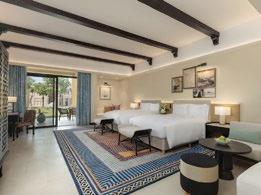 face the beach. Ideal for families and big group stays are the two-bedroom suites, which combine the ground floor of the villas and mean you have a pair of king rooms, and in some cases, your own private pool to bliss out and enjoy. The guest rooms are warm and comfortable, with Diptyque amenities and colourful artworks.