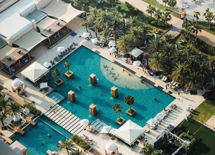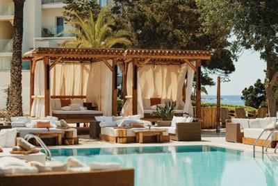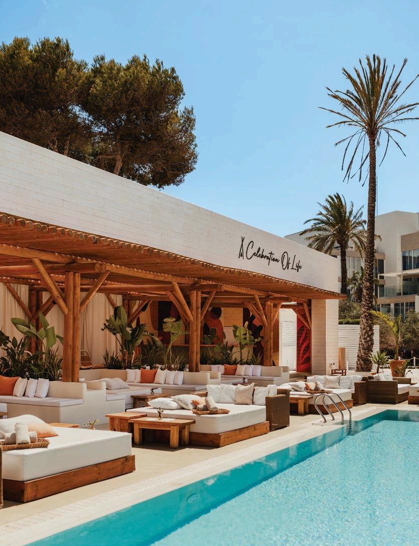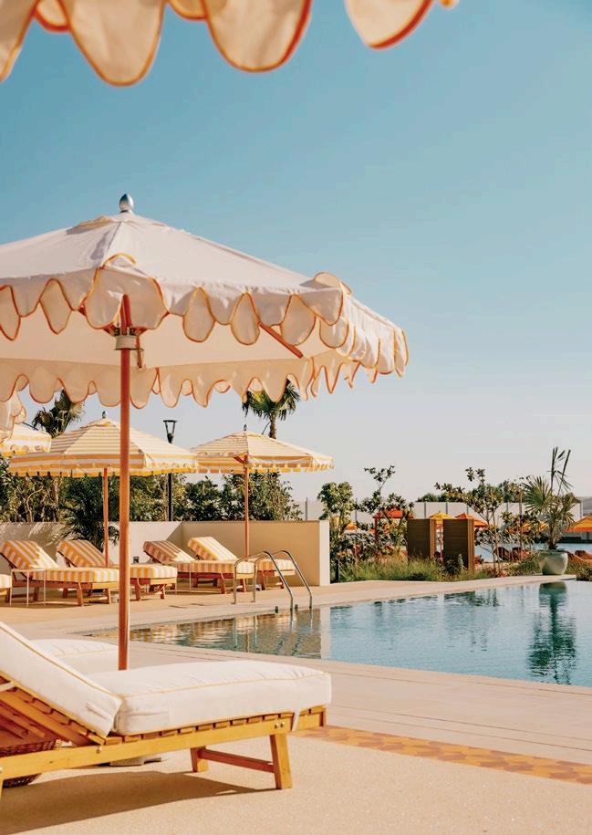 While Santa Eulalia isn’t typically known as the hedonistic heart of the White Isle, W Ibiza dances to the sound of its own beat. The playful property has added a touch of Ibiza pizazz and typical W flamboyance to this part of town, and the resulting hotel is a sophisticated party pad, while still feeling like you’re somewhat removed from the tourist throes. Guest rooms are bright and breezy, laced with Ibiza’s bohemian spirit through colourful artworks, throws and cushions. Each comes with its own balcony, shaded by a rainbowhued awning, which faces inward to the main Wet Deck pool, so you always feel like you’re part of the happenings. Everything is in an invitation to socialise and have fun: the lobby – where check-in comes complete with a cool glass of Cava – melds into the W Lounge; an amphitheatre-style space that fuses industrial-style concrete with colourful cushions. A cool spot to chill-out by day, it transforms into an exclusive lounge by night that hosts a series of lively DJ sets for those in-the-know. The crowning feature, adults-only Glow Rooftop, further cements this hotel as one of the east coast’s most stylish spots, with bright orange loungers and a pool for soaking up the rays during the day, and a bar that shakes up refreshing sips as the sun goes down. A short walk away, new for 2024, W Ibiza has taken over an old restaurant on the beachfront to transform it into Yellowfish, a beach club and Mediterranean restaurant with a chilled-out soundtrack, a boho beach bar, and a menu of sharing plates best for enjoying over a leisurely lunch. There’s a selection of restaurant tables under a thatched roof, or recline on your lounger watching the waves as you dine. Rates from Dhs1,350. @wibiza