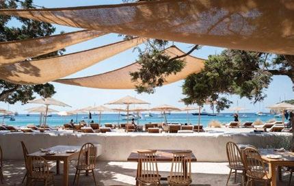 Nestled within a serene cove on the east side of Ibiza is Amante. This split-level restaurant and beach club is arranged around the cliff it’s carved into, and gazes out over the calm turquoise waters that gently lap the island. While it’s not sunsetfacing, the sorbet hues served up at this time of day create a romantic backdrop to an evening meal, as does the chilled house beats that play softly as you dine. The food is a concise menu of Mediterranean flavours that favours ordering per person rather than tapas-style sharing. The best tables are found on the second and third levels, closest to the edge. Or, go all-out and book the private candlelit table for two. @amanteibiza