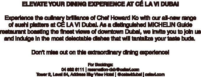 For more information, call 04 556 6666 or visit caesars.com/Dubai/caesars-palace-dubai/offers