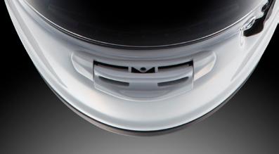 The combined systems offer excellent and efficient ventilation. The new top duct provides 11% more airflow, with bigger switches for effortless operating. The Air Channel guides air from the eye port area to the side ducts. The new diffuser is 20 mm longer with improved aerodynamics, and 19% larger intake scoops, both work together with the Air Wing to improve stability. The chin cover blocks air intrusion and draws more air from the mouth area.