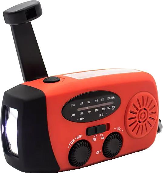 2000 mAh:n litiumioniakku takaa radiolle pitkän käyttöajan, ja lataaminen onnistuu kätevästi USB-kaapelilla. Radio on varustettu käsikammella ja aurinkopaneelilla.