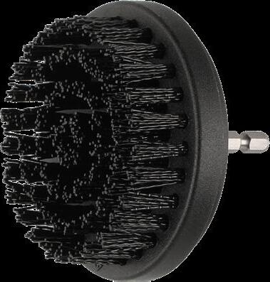Nylonharjakset puhdistavat grillin pinnat hellävaraisesti, ja porakoneen pyörivä liike irrottaa likaa tehokkaasti.