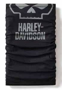 Harley-Davidson® Men's Willie G Skull Neck Gaiter, Black 9770125VM. Made with moisture-wicking Coolmax® and antimicrobial material. Made from 100% polyester. One size fits most. Extended length can be worn as a neck tube or pulled up over ears/mouth for more coverage. Sublimation print.