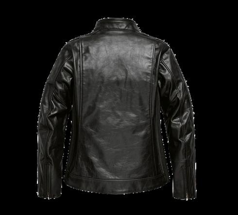 Materials:Midweightcowhideleatherandsuede.100%polyestermeshlining. Closure:Two-wayexposedzipperfront.Zipperedcuffs. Pockets:Zipperedhand-warmerpockets.Oneinteriorstashpocketandone interiorzipperpocket.
