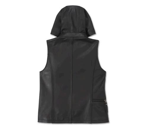 MinimalbrandingmeetsmaximumstyleonthisLimitedEdition.Cutfrom buttery-softsheepskin,ourOffRoadsVestfeaturesaremovablehood andamplepocketsforsecuringessentials.Itsseekdesignhasshapeflatteringprincessseams,leatherzipperpulls,andahitofembroideryon front.