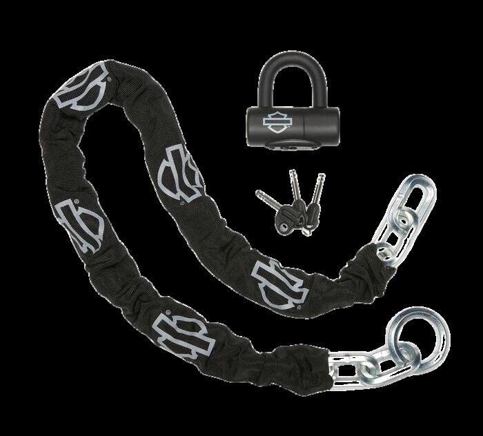 Maximumprotectionforyourmotorcycle.Thishigh-securityloopchainfeaturesa 12mm,tripleheat-treatedboronmanganesesteelchainwithacinchringfor securingyourbiketostationaryobjects.Itincludesafullyremovablediscbrake androtorlockwithahigh-securitydoubledeadboltdesignandatough-defeatlock cylinder.Thelockhasasoftvinylcoatingtoprotectyourbike'sfinish.
