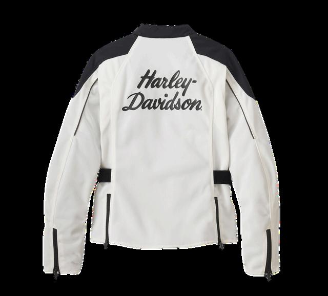 CoolgoesbothwaysonourH-D®ShieldRidingJacket.That’sbecauseitssleek stylingisbuiltfromlarge-holepolyestermeshtowelcomeairflow(zoomintosee). Thiswomen’smotorcyclejacketwiselyfeaturesstretchpanelingforcomfortand elasticloopsatthecuffstokeepyoursleevesinplace,andisfullyequippedwith ourD3O®Ghost™armorforsuperiorimpactprotectionthatfeelsweightless.It’s finishedwithgraphicsatthecuffsandneck,plusour#1Logogracingthesleeves foranunderstatedyetelevatedlook.