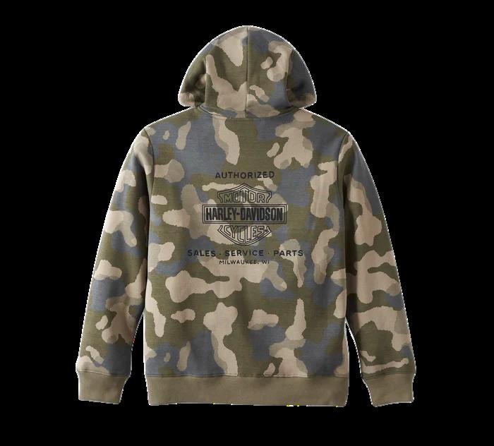 AmpupyourcamogamewithoutlosingyourenthusiastedgeinourStreet SurplusZip-UpHoodie.Builtforcozycomfortfromacotton/polyfleeceblend withhoodiemust-haveslikeajersey-lineddrawstringhood,rib-knittrim,anda roomykangaroo-stylepocket.Theallovercamopatternistheidealbackdrop forourbrandinginchainstitchembroideryonthefrontandback.
