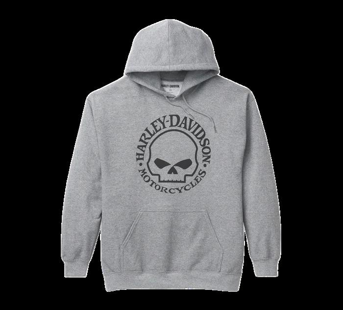 Classicstyleisretooledtohonortheopenroadinthishoodie.Madedurableyet comfyfromamixofcottonandpolyestersweatshirtfleecewithgotta-have hoodiebuilt-infeatureslikeagenerouskangaroopocket,alinedhood,andribknitcuffsandhem.Brandedwitharevved-upprintofouresteemedWillieG™ Skullonthefront—thiscirca2000DaytonaBikeWeekgraphicisstillan enthusiastfavorite.
