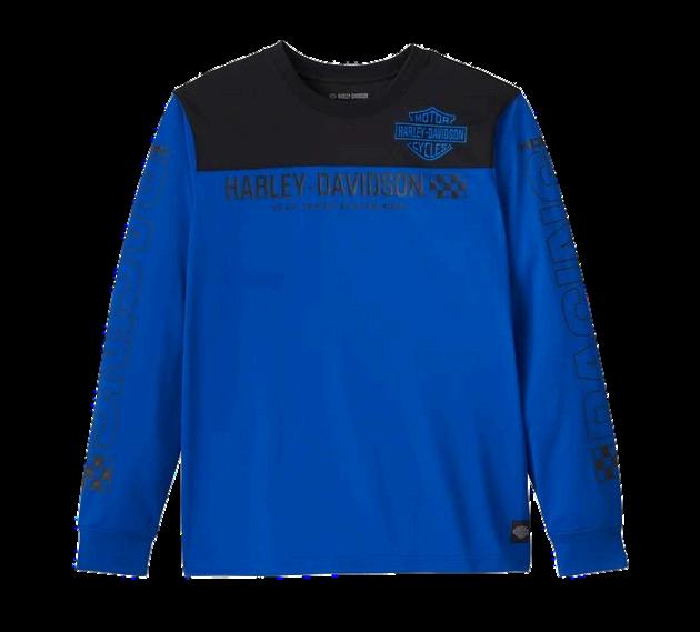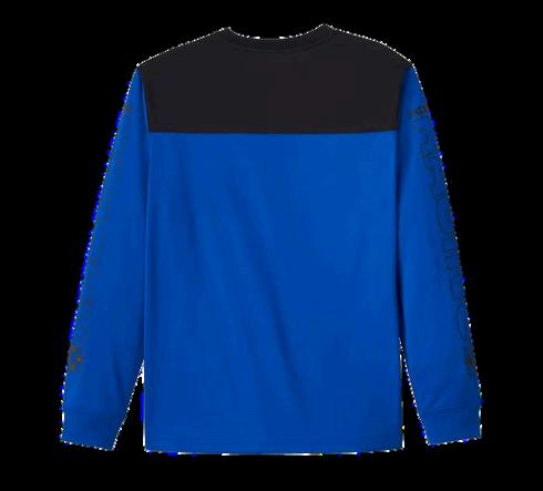 SportystylesharesalanewithourflattracklegacyontheBlueBlazesLong SleeveRacingJersey.Madefrombreathablepolyesterhoneycombmeshfora texturedlookthathelpscontrolyoursweatsituation.Itsrelaxedfitfeaturesa rib-knitnecklineandcuffstohelpkeepitsshape,andacontrastingyokeforan elevatedlook.Thismen’slongsleevet-shirtisfinishedwithamontageof graphicsthathonorourproudracingheritage.