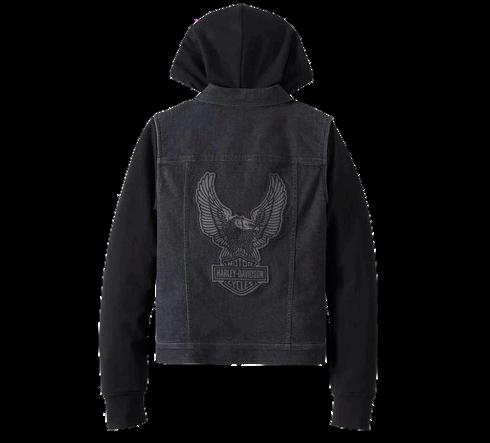 Thisrockin’riderlookisatripleplayofstyle,comfort,andversatility.Our LimitedEditionKickstart3-in-1BlackDenimJacketfeaturesanall-cotton denimvestplusacozycotton/polyfleecehoodie,bothenzymewashedfora well-wornvibe.Thevestisaclassictruckersilhouettewithsturdypocketsand hiddensnap-downcollarthatstaysputduringrides.Wearthevestalonewith otherH-D®layers,thehoodiealoneovertanksandtees,orbothtogetherto completethislook.Thehoodieisminimallybrandedonfront,whilethevesthas akissofbrandingonfrontandaboldappliquéonback.