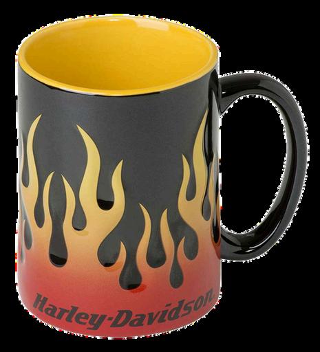 Grabahandfulofyourfavoritebrewwiththissculpted,3-dimensionalflames 15-ounceceramiccoffeemug.Flamesroarupfromthebaseofthemugona blackbackground.TheHarley-Davidson®logoisatthebottom.Theinterioris yellowandthehandleislarge.Feelfreetoheatinthemicrowave;itisalso dishwashersafe.ThisparticularmugisoneofthemorepopularHarley® brandedmugsaround.Asagift,it’sperfect.ManufacturedunderHarleyDavidson®licensebyAceBrandedProducts.