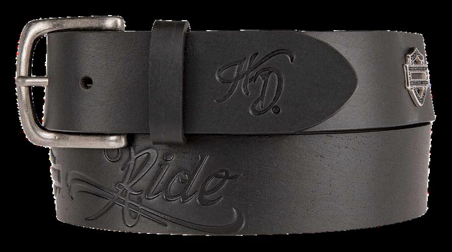 Highqualitygenuineleatherwithsmoothsurface IncludeslightantiquenickelfinishbucklewithHarley-Davidson®signature andflatheadstudsdefiningtheperimeteroftheleatherstrap EmbossedHarley-Davidson®brandscriptontheleatherstrap Beltaccommodatesinterchangeablebuckles&measuresapproximately 1.5"wide