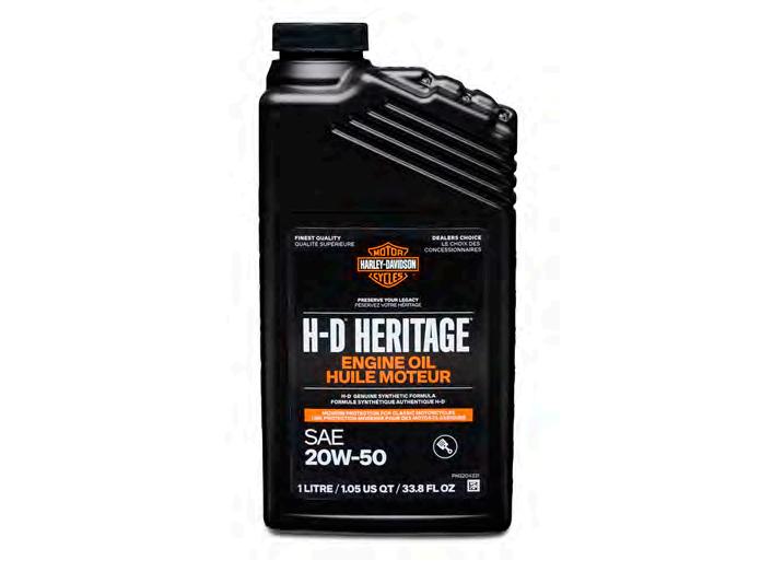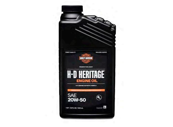 Preserve and protect your older HarleyDavidson® motorcycle engine with Heritage Full Synthetic 20W50 motor oil. This modern motorcycle engine oil is specifically formulated for use in engines not equipped with an exhaust catalyst. Features a high content of ZDDP, a zinc-based additive used to help reduce wear on critical bearing surfaces.