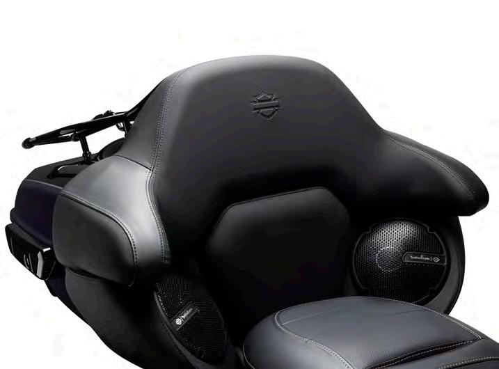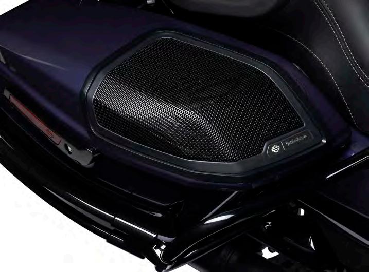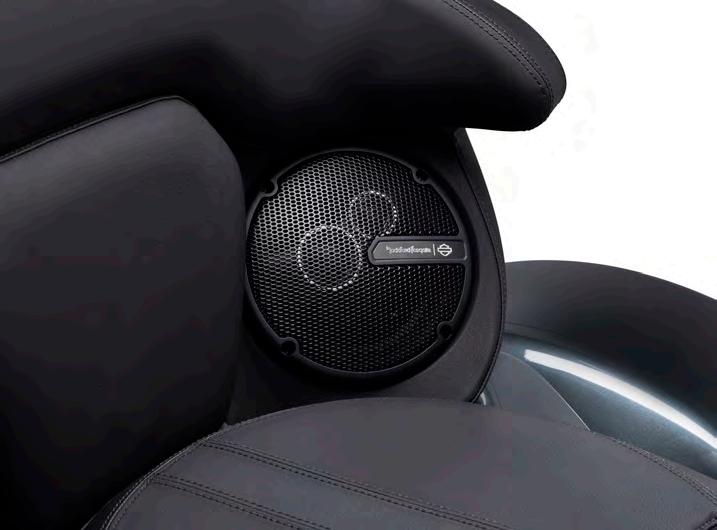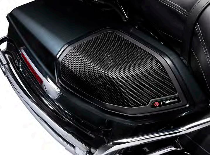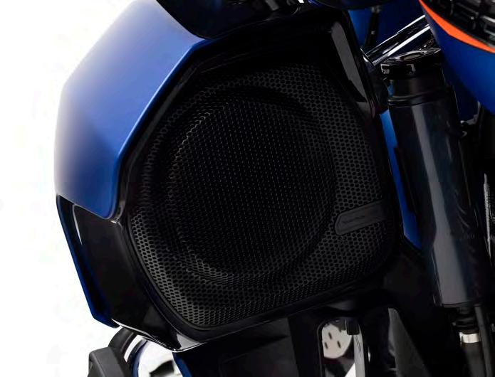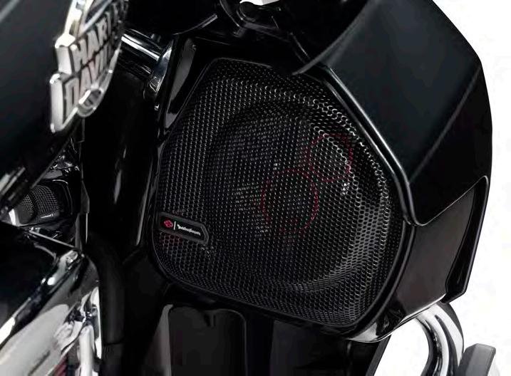 • Speakers mounted in saddlebag lids surround the rider and passenger with sound and increase the over-all volume of the audio system