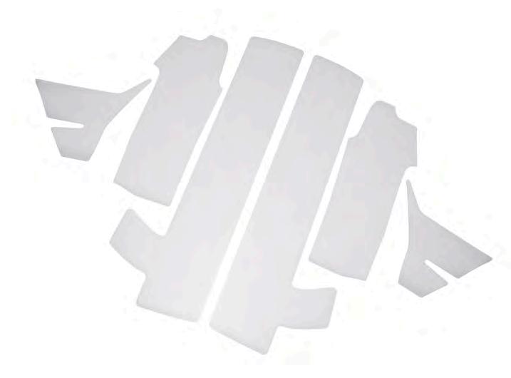 • Six pieces of crystal-clear material (3 per side) protect the area surrounding the passenger footboard
