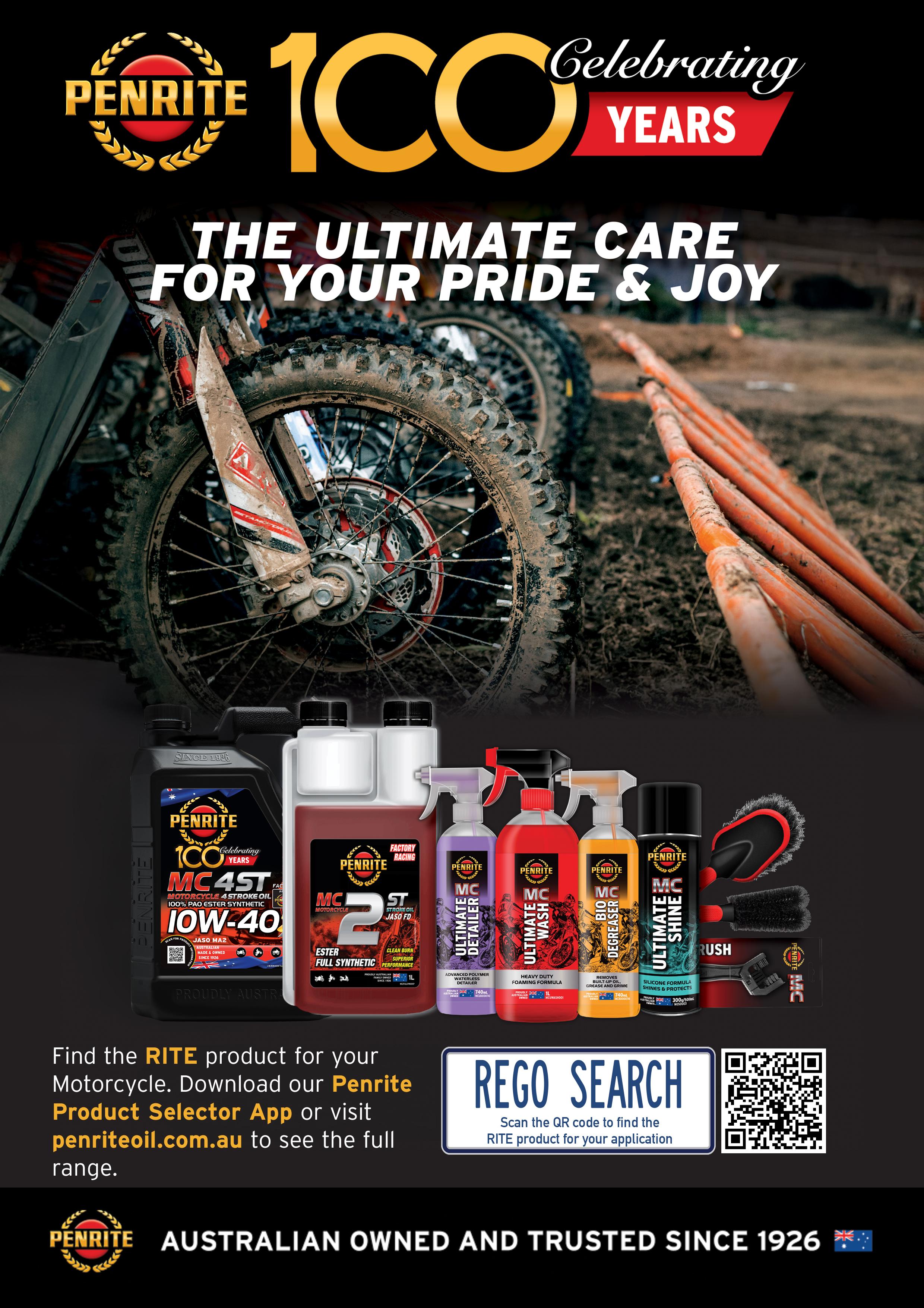 This season is especially meaningful and exciting for Penrite as we celebrate 100 years as a family-owned, Australian-made brand. Reaching this milestone is something we’re incredibly proud of, and it makes our continued involvement in Australian motocross even more special.