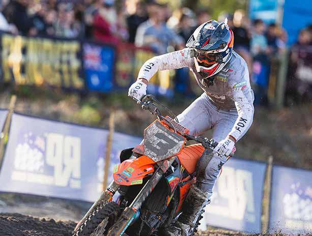 and round win from his teammate, Webster, in dramatic fashion. Todd holeshot and led the first half of the final Kawasaki MX1 Class race before coming unstuck in the increasingly rutted conditions, allowing Webster to inherit the lead. Then in the final corner, it was Webster’s turn to make a small error, and Todd quickly pounced to take the last-gasp win by 1.14 seconds, while Levi Rogers (Yamaha) rode the best race of his year to finish a solid P3.