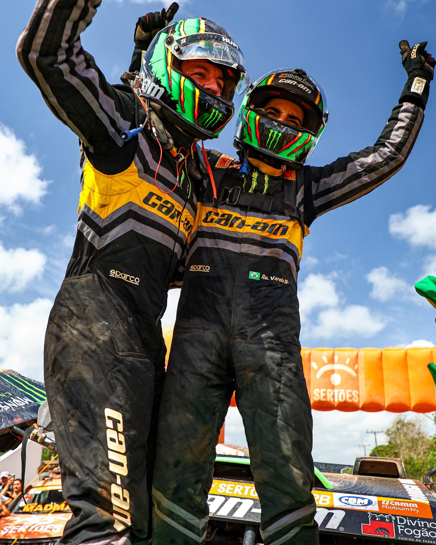 Entre eles, houve quem conseguisse combinar da melhor forma velocidade, resistência e força mental para entrar na galeria dos campeões. Ou, como no caso de Lucas Moraes e Kaíque Benti voglio (Toyota Hilux DKR T1+/MEM), repetir o feito. Se em 2019 eles foram ajudados pelas circuns tâncias, desta vez mostraram já no Super Prime que antecedeu a primeira etapa que não deixariam a oportunidade escapar. Venceram 10 das 14 etapas e deram prova de superação na 11ª, quando Lucas foi obrigado a acelerar o protótipo fabricado na Bélgica por mais de 200 quilômetros sem a ajuda da direção hidráulica. Uma segunda posição no estágio deste sábado foi mais que suficiente para garantir a festa em Salinópolis.