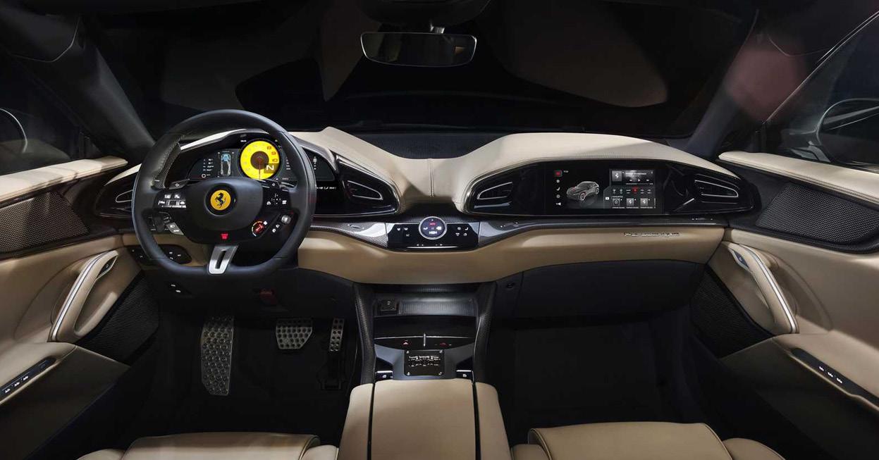 A Ferrari Purosangue também é o primeiro modelo da fabricante italiana compatível com An droid Auto e Apple CarPlay. Isso substitui o siste ma de navegação integrado.