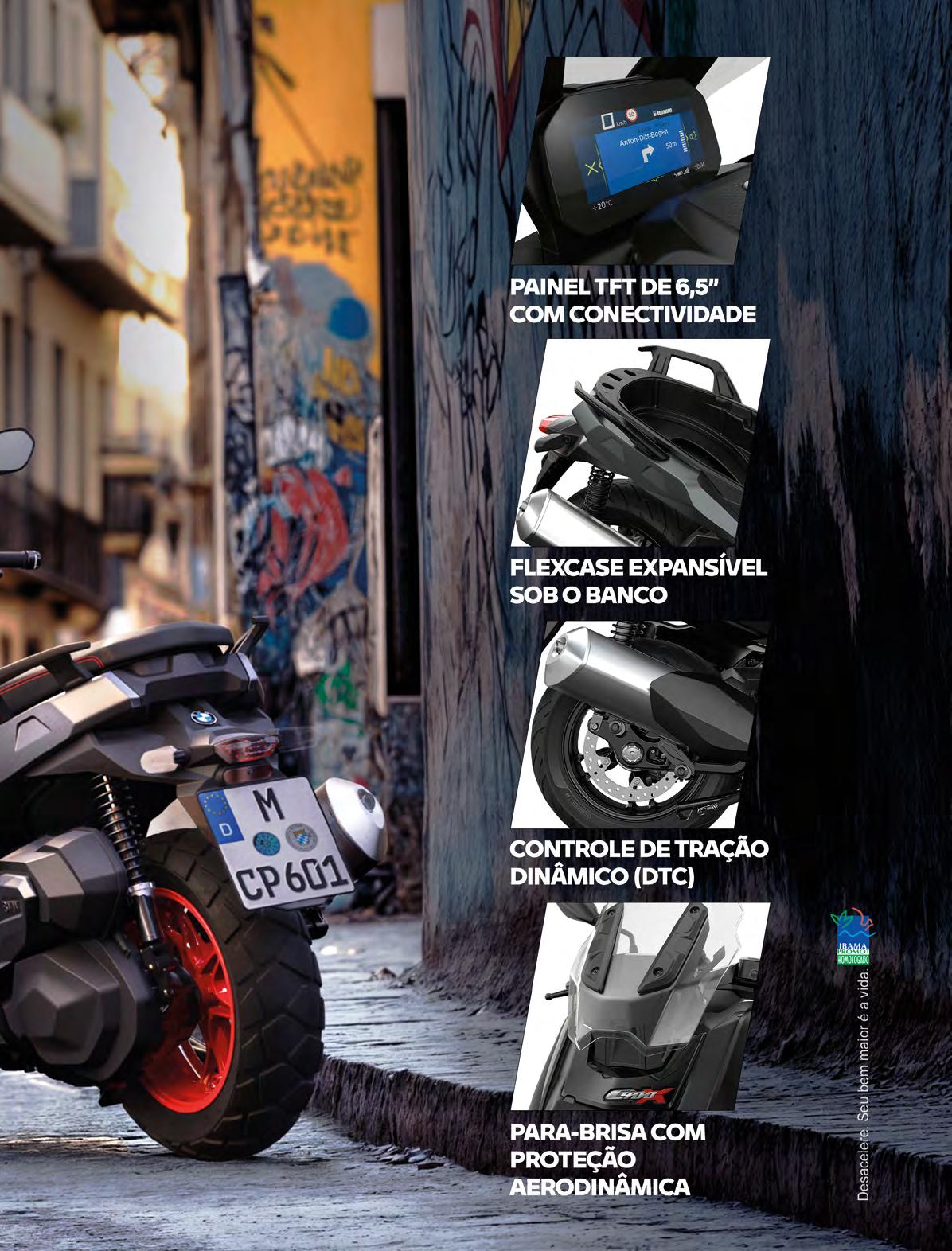 O scooter da marca alemã tem virtudes interessantes, como a boa ergonomia e o motor potente que lhe garante respostas espertas e rápidas ao giro do acelerador. Tem excelente desenvoltura no tráfego urbano, mas o espaço sob o banco é limitado quando você está rodando com ele. Embora a tecnologia Flexcase amplie o espaço para você guardar o seu capacete, isso só é possível com a moto parada, isso é um ponto a se observar. O preço de R$ 65.900