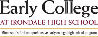 Irondale is the first high school in the state to offer a comprehensive Early College program allowing students the opportunity to earn a two-year associate degree for free. Irondale partners with Anoka Ramsey Community College to offer the Early College program as one of many opportunities students can choose for a personalized focus on postsecondary success. Through the Early College program, more than 85% of Irondale students earn college credits, and more than half earn at least one semester of college credits.