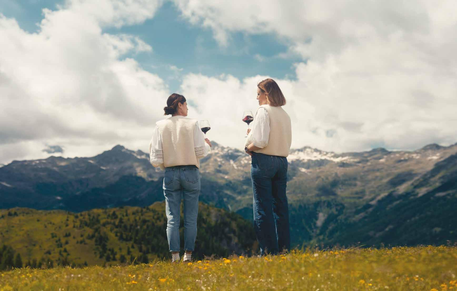 When the lifts close, a special cable car will take you up to altitude. Afterwards, an aperitif with delicious finger food is served in the most picturesque mountain huts, and at dusk you descend with skis on your feet and a torch in your hand, accompanied by ski instructors.