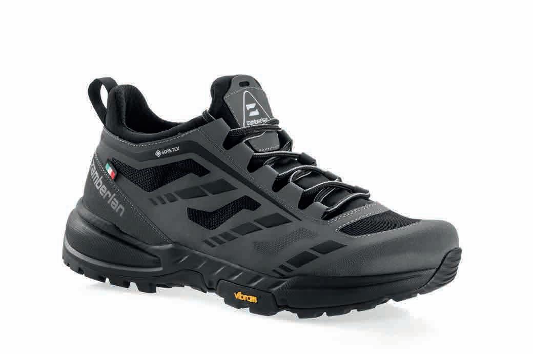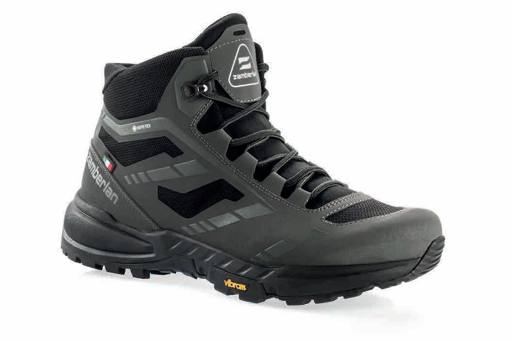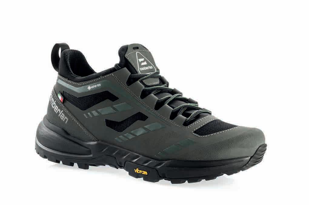 Ideale per affrontare hiking, percorsi di avvicinamento e vie ferrate è nata dall’incontro dell’esperienza Zamberlan con il sistema svedese RECCO. Il risultato è una scarpa tecnicamente evoluta, che dimostra di essere un’attenta e fedele compagna in diversi terreni e condizioni. Equipaggiata di riflettore RECCO, in caso di smarrimento o di emergenza l’utilizzatore è in grado di essere subito rintracciato dalle organizzazioni di soccorso provviste dell’apposito detettore. Con i suoi 480 grammi di leggerezza è versatile e nello stesso tempo precisa e stabile nell’appoggio. Ma le dotazioni non finiscono qui: la calzata avvolgente con allacciatura fino alla punta è l’ideale per un utilizzo tecnico, la nuova forma X-Active Fit® esalta il comfort, la mescola Megagrip® della suola Vibram® Pepe, abbinata all’intersuola in EVA a doppia densità, offre ottima ammortizzazione e massima aderenza.