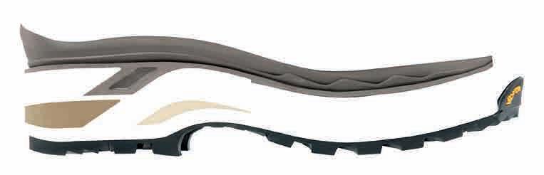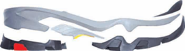 1 Zeppa in PU a bassa densità per ottimizzare l’effetto ammortizzante. Low density PU to optimize cushioning and shock-absorbing.