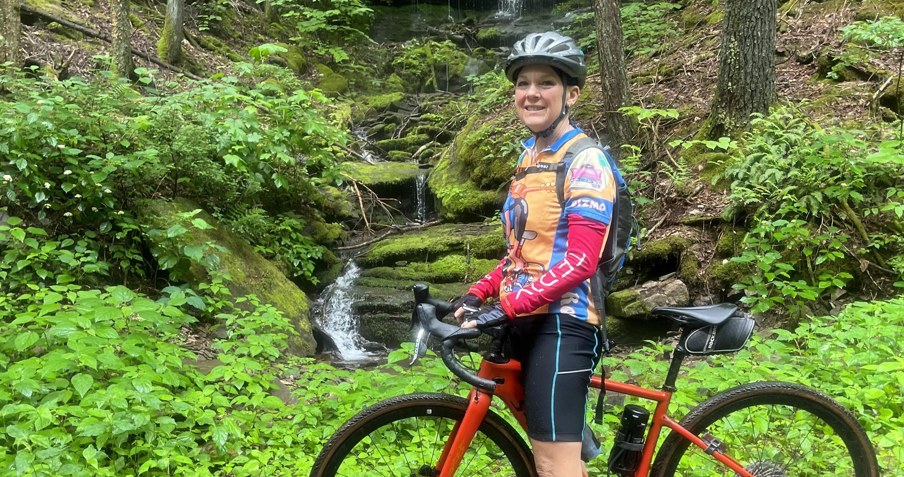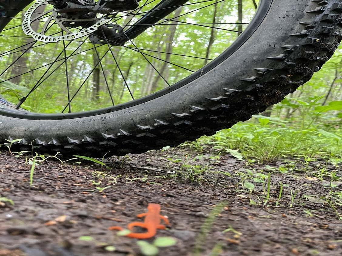 There’s an old logging road behind my house in Mansfield that I frequently hike or bike with our two dogs. On this particular morning, the trail was overrun with red efts, and it was a challenge dodging the little critters. This one seemed totally unbothered by my fat tire and was even happy to pose for a photo.