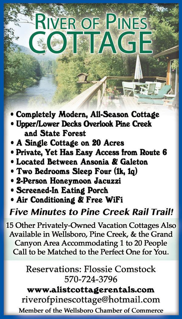 www.wellsboropa.com 59 50 BALLARD STREET • TROY, PENNSYLVANIA 16947 NOW BOOKING Weddings • Private Parties • Events For more information or to see if your special date is available, visit WWW.TROYSALEBARN.COM Funded by a grant from the Bradford County Tourism Promotion Agency our neighbors We invite everyone from everywhere to come “Experience Bradford County!” Kayaking & Hiking History & Heritage Adventure Awaits Fairs & Festivals PostcardLike Streets www.visitbradfordcounty.com 570.265.TOUR Follow us on 858 West Fourth Street | Williamsport, PA 17701-5824 Phone: 570.326.3326 | Fax: 570.326.3689 www.tabermuseum.org • Sunday Afternoon Society Programs • Local History Coffee Hours • Children’s Events • Frequent New Exhibits Museum THOMAS T. TABER of the Lycoming County Historical Society Museum | Archives | Library Join us for our…