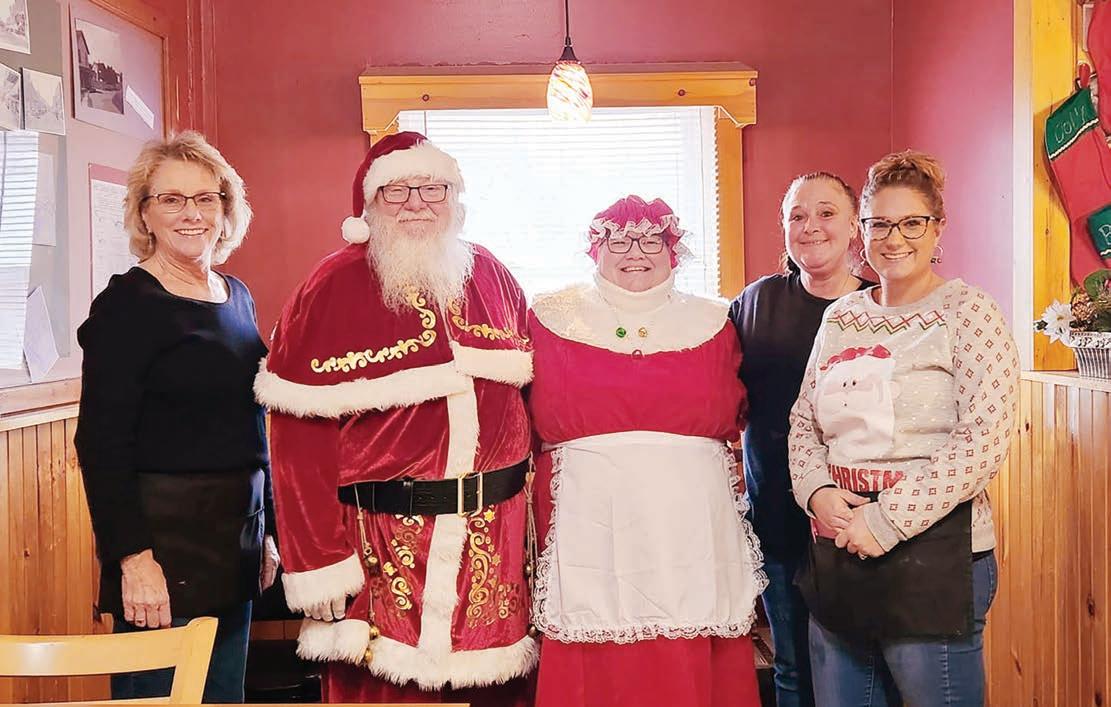 Courtey Rosie’s Diner More than milk and cookies: Mr. and Mrs. Claus drop into Rosie’s Restaurant in Tioga several times between Thanksgiving and Christmas to check on one of their biggest helpers. Here they are with (l to r) Sue Gee, Rosie Townsend, and Melissa Gee.