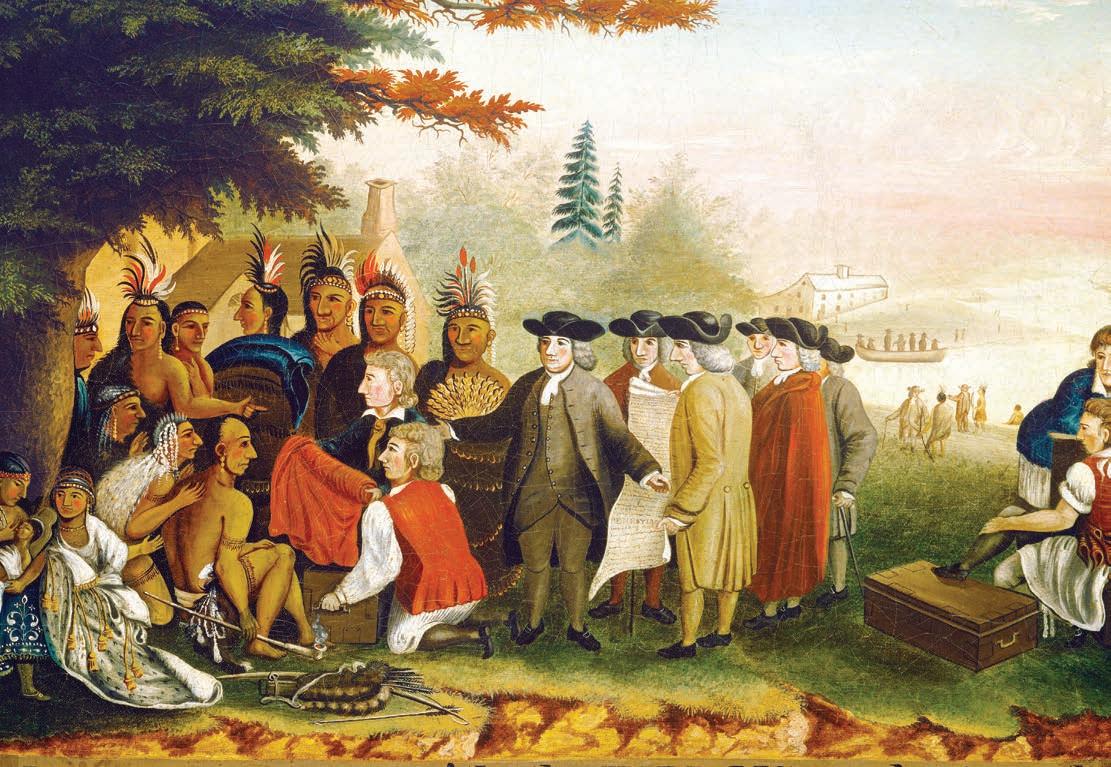Originally from homelands that extended along the Delaware River from modern-day New York to Delaware, the Lenape were Algonquin-speaking people who identified with one of three tribal clans—the Turtle (Unami), the Turkey (Unalachtigo), and the Wolf (Munsee). It was the Lenape with whom William Penn famously made a peace treaty in 1687 in Lenapehoking (modernday Philadelphia), the spiritual and physical home of the Unami. The agreement promised to honor the indigenous peoples’ claim to their ancestral lands in the wake of European immigration.