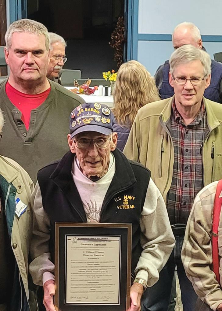 At the November 10, 2021 meeting, the Susquehanna Chapter recognized Bill O’Connor for his lifelong dedication and work for the mission and goals of Trout Unlimited. Writer Kevin McJunkin is behind Bill's left shoulder, and researcher Bob Baker is the big guy over Bill's right shoulder.