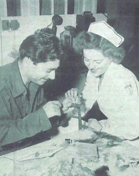 (Top) Ernie and Hilda peruse a customer order in May 1950; a fly-tying occupational therapy program the Department of Defense asked them to start in 1943 brought together therapists and disabled soldiers in army hospitals.