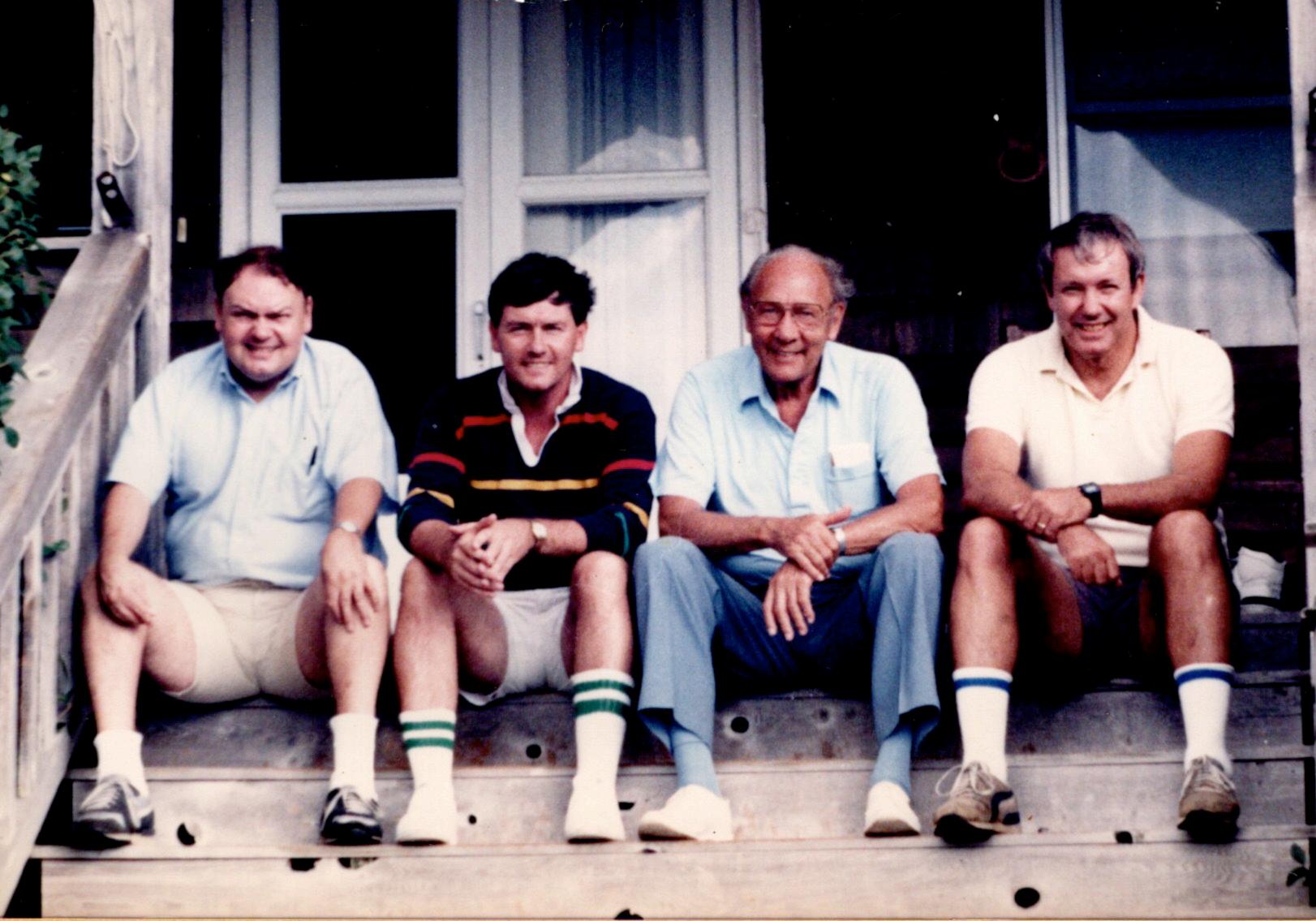 Prevost brothers gather at their sister’s shore house in 1986—Clancy at far right with (l to r) brothers Jim and Lou and father Dr. John.