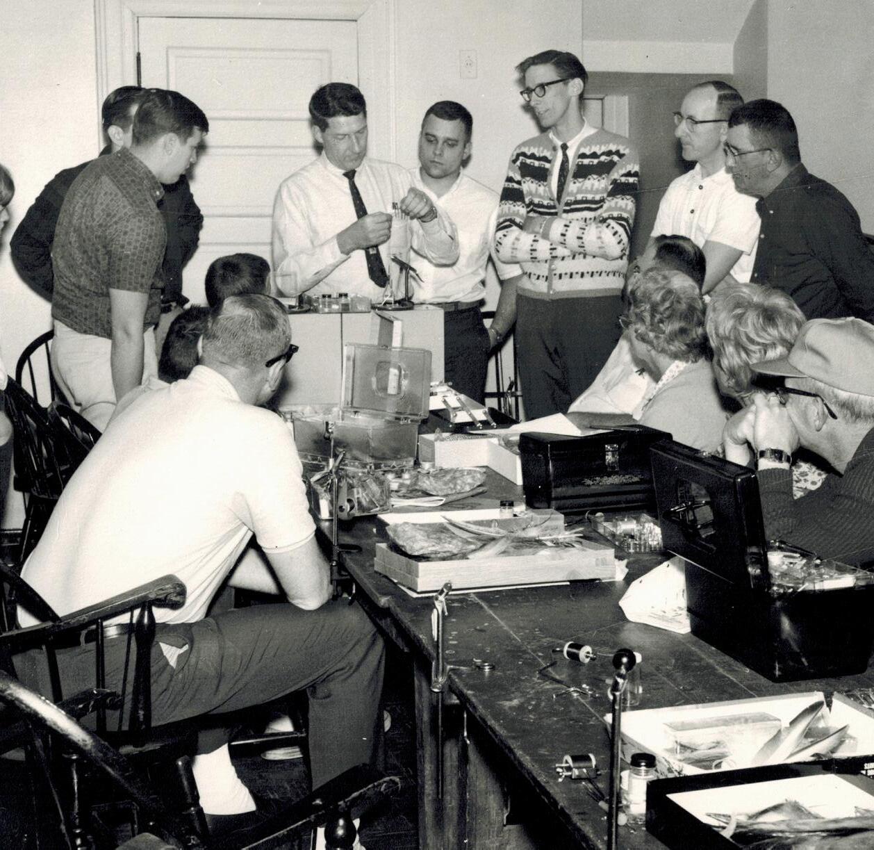 Bill headed up the first SCTU fly tying class in the winter/spring of 1968. Al Troth, inventor of the Troth elk hair caddis fly and others, would help in later years. Annual fly-tying classes continue to this day, and SCTU’s therapeutic rod building program for veterans and first responders draws inspiration from E. Hille’s wartime efforts.