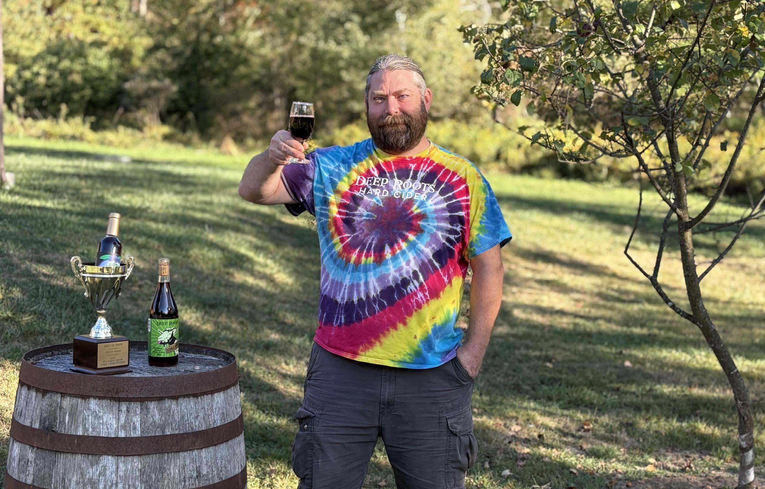 They won their first double gold in 2020 at the Great Lakes International Cider & Perry (pear cider) Competition for their elderflower champagne-style cider. They won Best of Show Fruit Wine at the 2025 Pennsylvania Farm Show for The Blues, a port-style blueberry wine made with berries from Blueberry Haven in Laceyville. It’s a dessert wine, so it’s sweet. Then just as the sweetness starts to fade, a robustness sneaks in, like a party guest who shows up fashionably late and kicks things into a higher gear. Tim has won lots of ribbons and medals for his concoctions, but Best of Show came with a trophy. “I always wanted a trophy,” he grins.