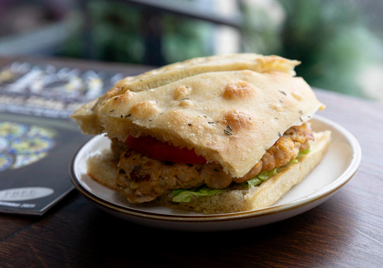“The vegetarian options at Komodo are not only delicious, but made with super fresh ingredients and are very ‘cravable,’” she says. Like, for instance, a white bean burger with lettuce, tomato, avocado, pickles, and secret sauce on their signature rosemary schiacciata as a meat-free menu selection.