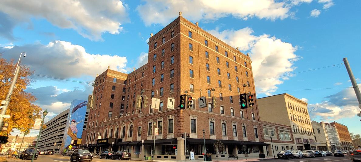 Welcome to the iconic Mark Twain Building, a former hotel dating back to 1929, now boasting all-new luxury apartments in the heart of Downtown Elmira’s rising arts & entertainment district! This staple of Elmira’s skyline has been extensively renovated with great attention to detail by incorporating its historic features of the building into a modern, 21st century “urban-chic” aesthetic.