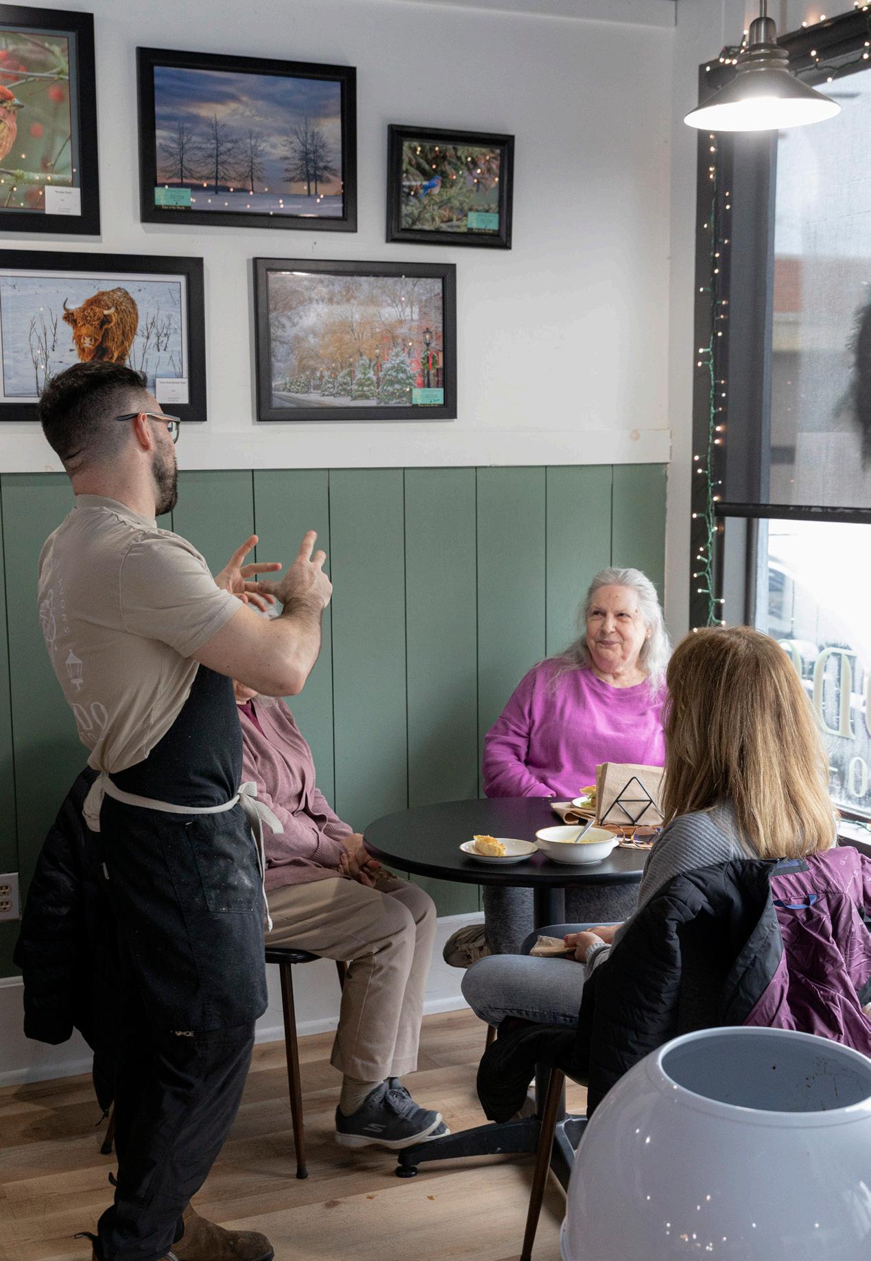 When diners come into this charming, modernized storefront on Crafton Street, they’ll no doubt find families laughing over cups of gelato in one of the comfy seating areas, friends enjoying locally procured and custom-blended coffees at the streetview bar top, and someone plugging away on a laptop over a sandwich-and-soup lunch at a café table.
