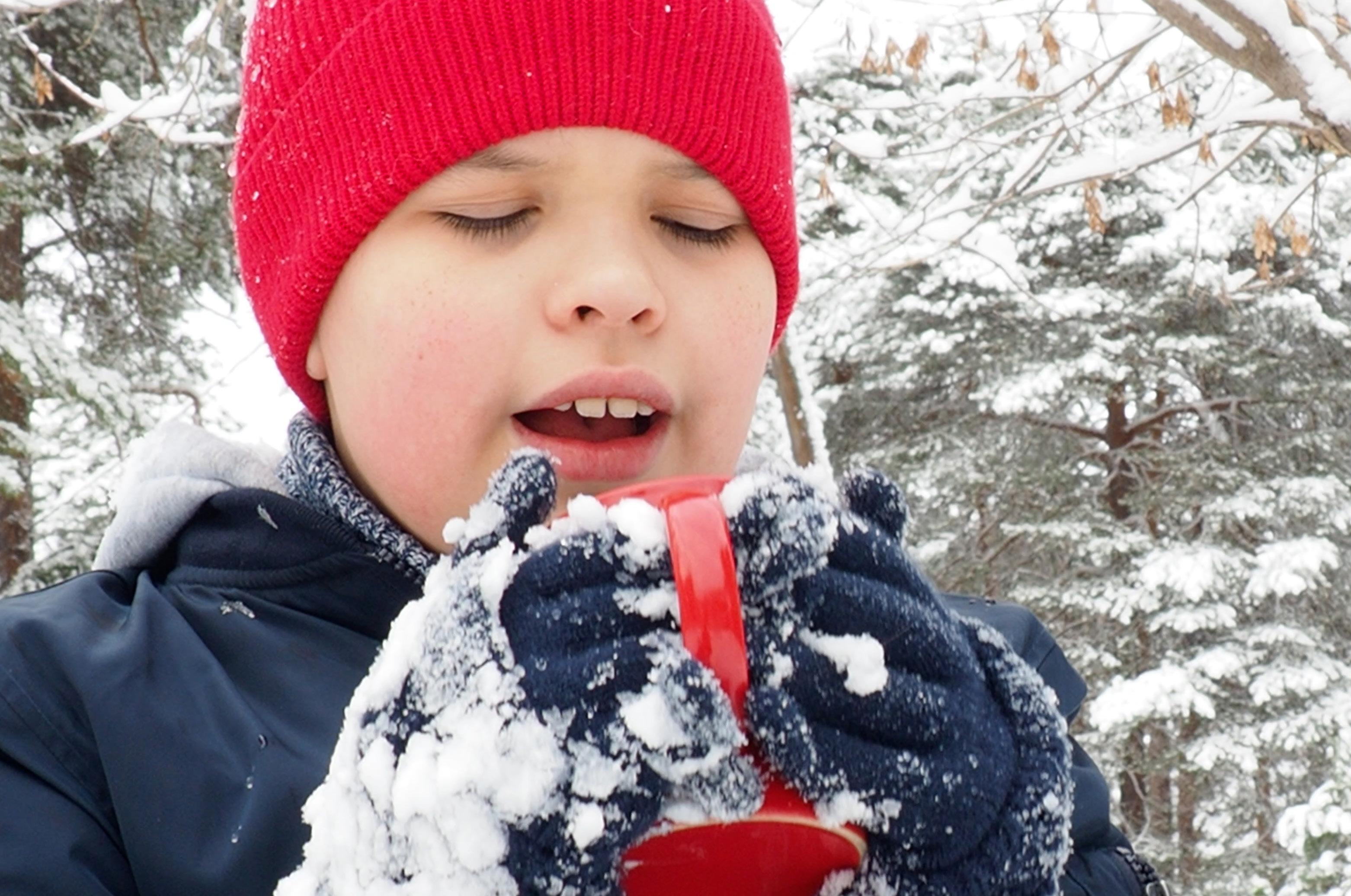 The combination of calories and warmth is magical for all ages, but essential when taking children out when it’s cold and they can’t get to shelter easily. We know we burn more calories in winter, and when you’re bonking (a technical term for running out of steam/crashing) having something sweet can quickly adjust your attitude. It’s also true that digesting warm food and drink raises your internal temperature through thermogenesis.